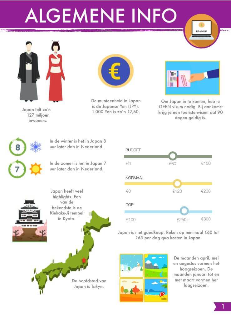 ”Wil jij naar Japan? Maak je droomreis waar met onze Reisgids Japan, vol met Routes, Reistips, Advies, Informatie en Inspiratie”.