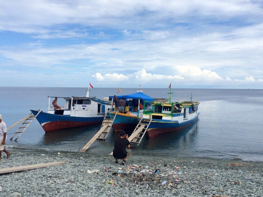 De boottocht van de Togeans naar Ampana ging niet zonder horten of stoten. De zee was best wild en de golven waren behoorlijke hoog. Iedereen, behalve wij en de crew, was aan het bidden of keek vaak angstig uit hun ogen. Gelukkig kunnen wij goed zwemmen maar de locals zijn niet de beste zwemmers ter wereld. Daarom waren ze, denken we, ook bang. Na dit avontuur over de ruige zee kwamen wij aan in Ampana. Bij Marina Cottages zat ook Mister Eddy die van alles kan regelen, hier hebben we dus onze busrit naar het vliegveld Palu geboekt.